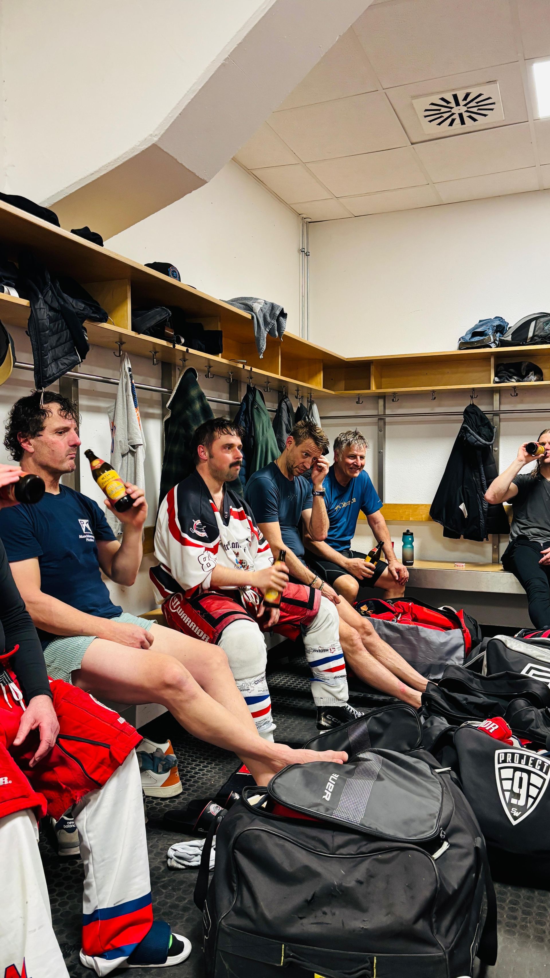 Nach einem Trainingsspielchen fand man sich im Kabinentrackt der MAX-AICHER-ARENA in Inzell zur Feier ein.